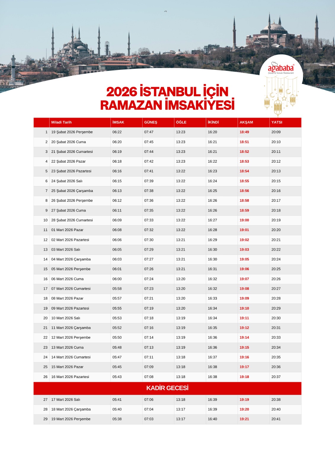 İstanbul İmsakiye 2026 – Dönerin Ağababası – Ağababa Döner